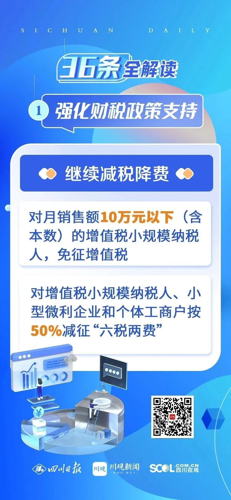 对月销售额10万元以下(含本数)的增值税小规模纳税人,免征增值税;增值税小规模纳税人适用3%征收率的应税销售收入,减按1%征收率征收增值税……“36条”正面回答了鞠淑君的疑虑。