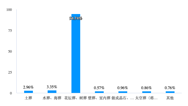 第一财经记者多方采访了解到,比起殡葬,其实生前事业涉及到更多项疗愈和服务,而此次“生前规划大调查”结果显示,人们在殡葬方面的认知度比较高,且有94.74%的受访者愿意接受花坛葬和树葬等环保节地葬。