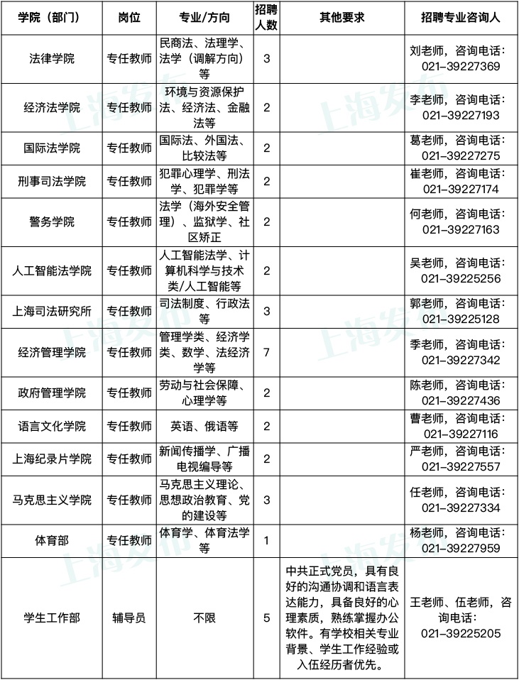 市人社局表示,上海政法学院招聘38名工作人员,招聘学院(部门)有法律学院、经济法学院、国际法学院、刑事司法学院等。有意者请于2月25日前登录上海政法学院网上招聘系统(网址:employ.shupl.edu.cn)进行报名。详见↓