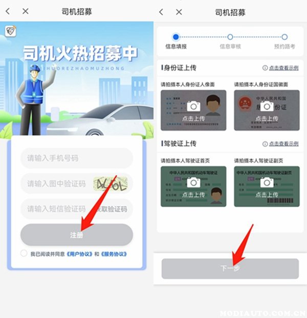 6、根据页面要求上传身份证正反面、驾驶证正副页后等待审核;