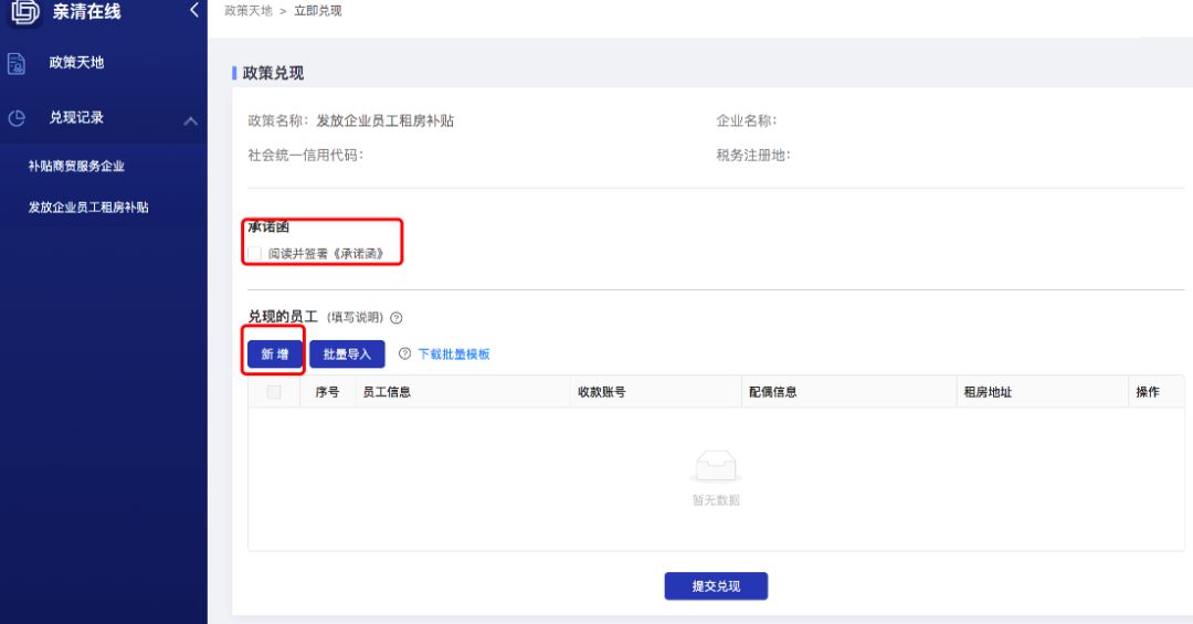 2. 选择子选项“发放企业员工租房补贴”,查询所有申请员工信息。