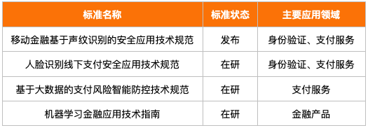 一、人工智能在金融行业的应用   人工智能作为“新基建”的核心板块之一,产业链包括基础支撑层、技术应用层和方案集成层。在金融行业方面,目前人工智能可以应用在包括身份识别、智能风控、智能投顾、智能客服等在内的几乎所有的金融业务场景中。   表 1:金融行业人工智能相关标准