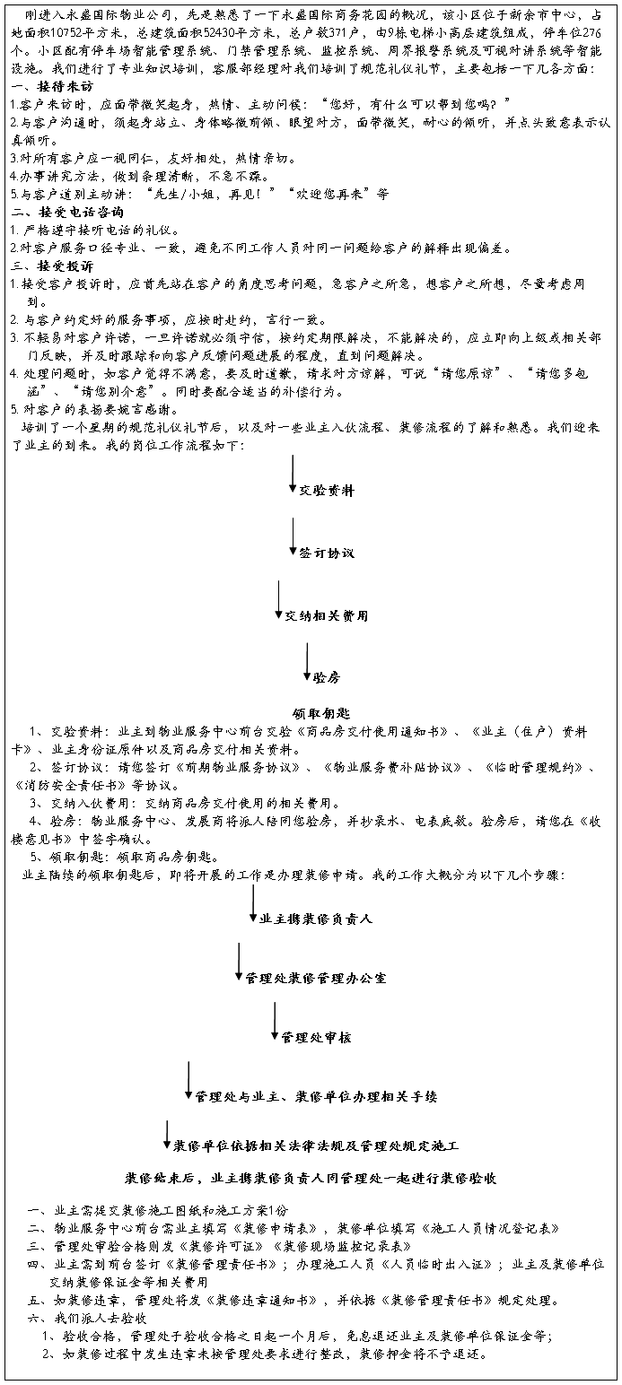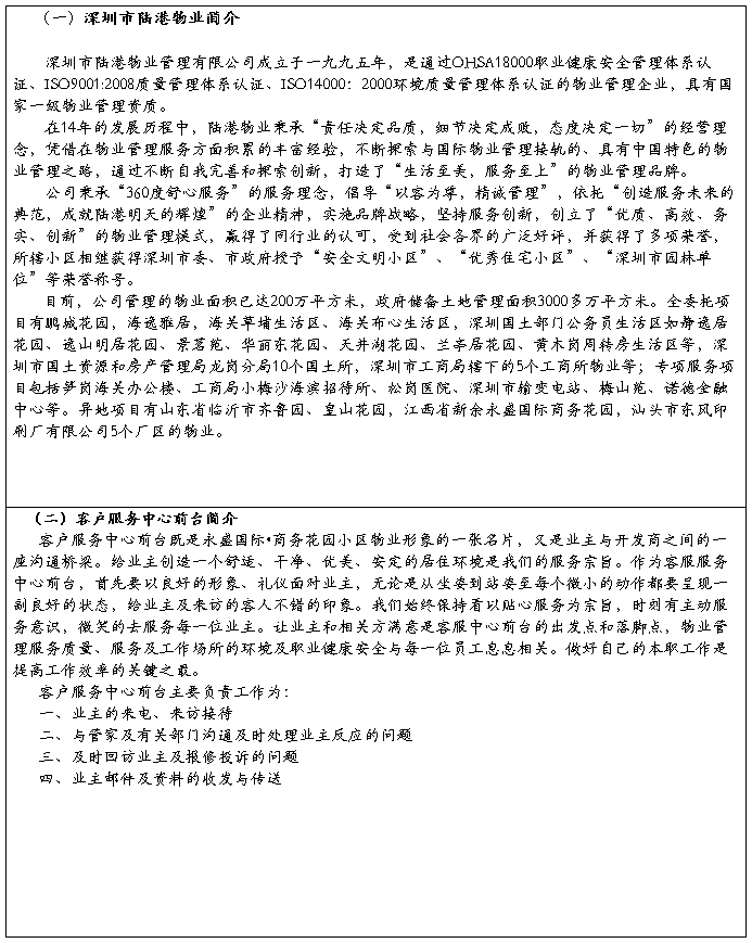 关于在深圳市陆港物业新余分公司从事客户服务中心前台的实习报告