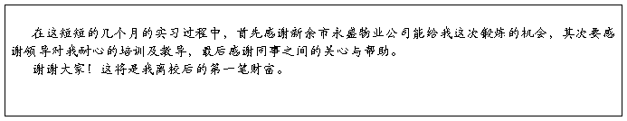 训班服务等工作。我想这虽然只是个小公司的一个小职位(相对世界500强而言),但我相我的价值在那里可以得到体现,我也可以从那个公司里学到我想学的东西,初步试下社会这汪水有多深。