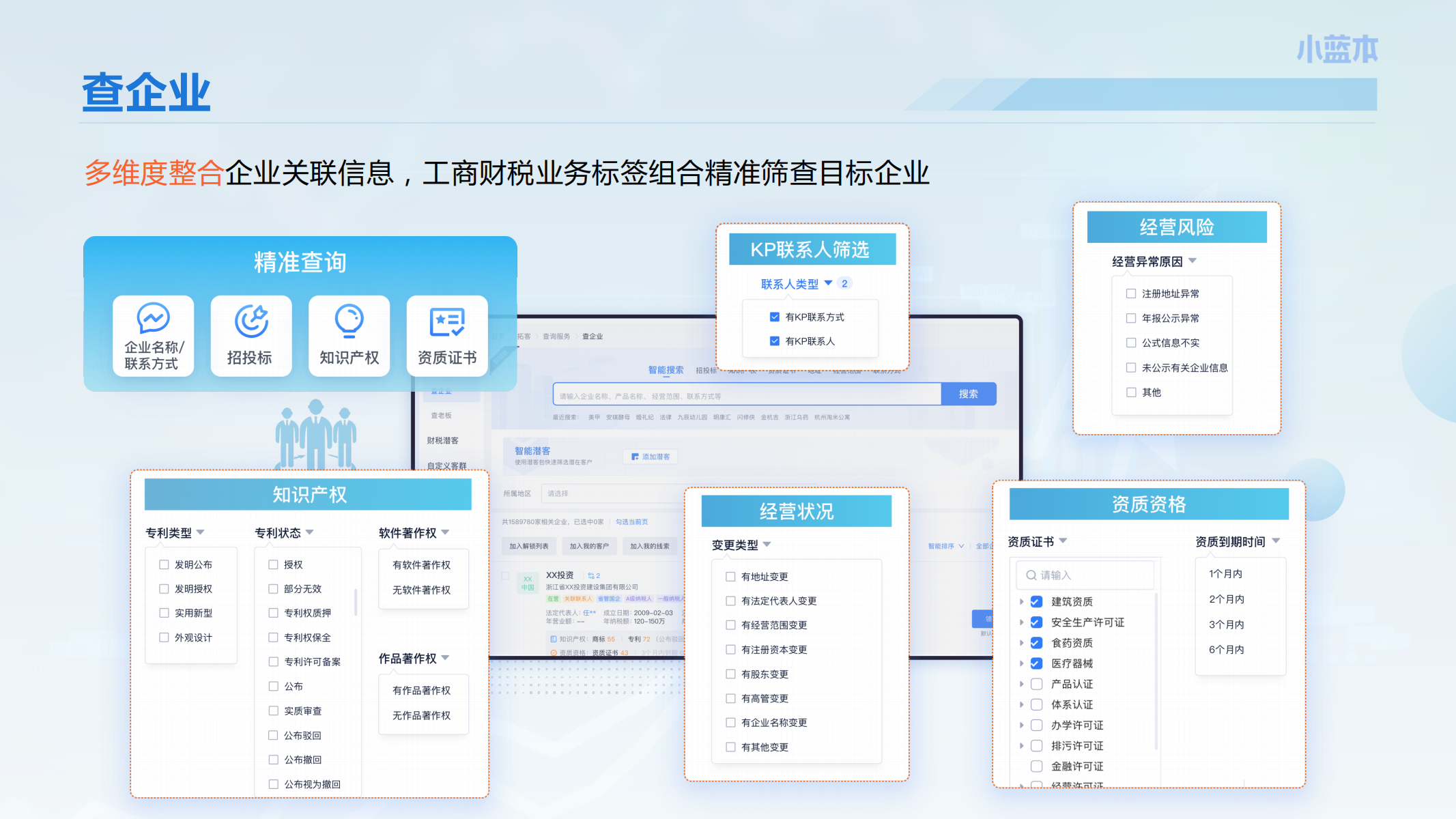 小蓝本专为财税服务行业设计,通过AI技术和大数据分析帮助企业精准定位潜在客户。相比传统方法,它可以大大提高工作效率和转化率,使企业更容易找到合适的目标对象。此外,小蓝本提供的全面解决方案覆盖了从客户挖掘到管理的整个流程,非常适合希望实现数字化转型的财税机构。