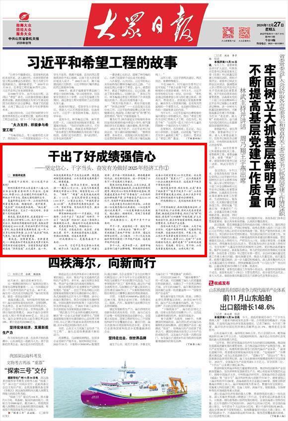 回望2024,展望2025,总结“干”出来的精彩与亮点,最终是要“干”出新的成绩与信心。有成绩、有信心、有干劲,山东高质量发展的未来,必将无限广阔。