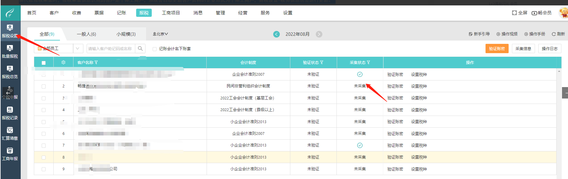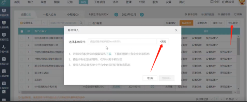 报税设置页面增加账密导入功能,方便客户批量修改账密信息。客户可以下载模板,可以批量维护账密,一起导入进去。就不用会计人员一个个进入维护