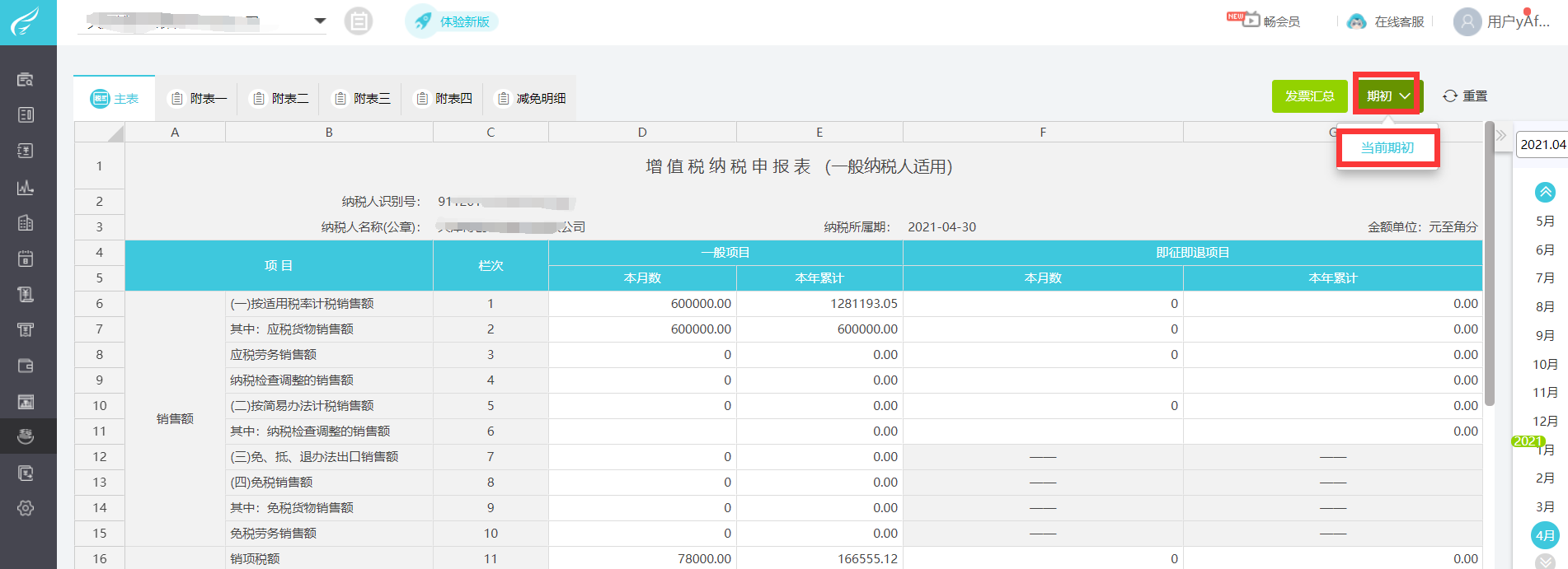 取期初成功之后,需要进入易代账的【税务管理】---【增值税申报表】进行查看期初