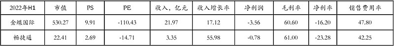 从2022年中报数量看,畅捷通的收入同比增长高达55.98%,远超金蝶国际的17.12%;在销售费用率方面,畅捷通为42.25%,低于金蝶国际的47.80%。