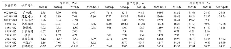 (1)电商类SaaS公司的下跌幅度较大,如中国有赞、微盟集团、移卡、乐享;一方面是疫情后电商类的行业增长下降,互联网平台的数据打通,导致跨平台的电商SaaS行业存在的逻辑有巨大瑕疵;另一方面是,这些公司的盈利模型大幅变差,销售费用率大幅提升;此外,代表性公司大幅裁员,如有赞的员工数量2021年的4494人降至2633人,裁员接近45%,也反映出公司面临很大的风险。