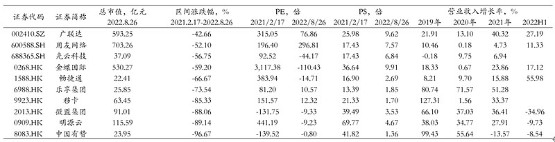 (3)以财税类代表的SaaS公司,如畅捷通、金蝶国际、用友网络的下跌幅度远低于港股SaaS指数,也略低于恒生科技指数,属于SaaS公司的抗跌板块。
