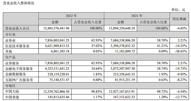 5、证券业务。这块主要是东方财富和指南针在做,东方财富这块目前利润已经是大头,22年证券业务净利润高达50多亿,东财这块确实做的好,目前我们每天都能看到拉萨军团就是他们的营业部;指南针收购的证券公司也在22年实行了并表,目前业务开展在推进中。