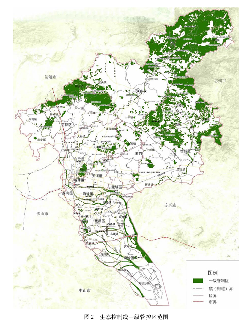开展市域生态系统综合评估,妥善处理生态用地与发展用地关系,将山、水、田、林、湖、海和绿地、生态廊道等对城市生态安全格局具有重要作用的生态要素划入生态控制线范围,划定全市生态控制线范围4000平方公里,占全市总面积为55%,其中一级管制区约占全市总面积的24%,二级管制区约占全市总面积的31%。