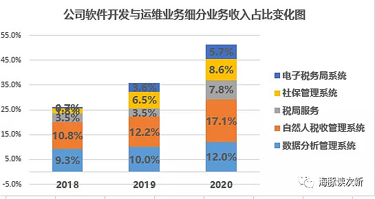 从具体产品来看,公司税务系统开发与运营业务以自然人税收管理和数据分析管理为主,税局服务、社保管理系统、电子税务局系统收入占比在快速提升。