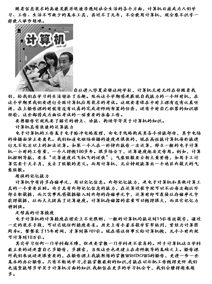 篇八 :学习计算机心得体会