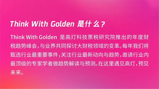 ? ? ? ? 12月13日,高灯科技票税研究院主办的Think With Golden 2019财税变革新动能峰会在北京中国大饭店召开。本次峰会邀请了财税领域的专家学者、顶级投资机构、知名企业高管共同复盘2019年财税领域的重大变革,并从不同维度分析和预测了2020年财税行业的动向与新趋势。围绕“个税改革”、“数字经济”、“区块链+财税”等核心议题展开了充分讨论和交流,为大家奉上了一场财税领域的思想盛宴!