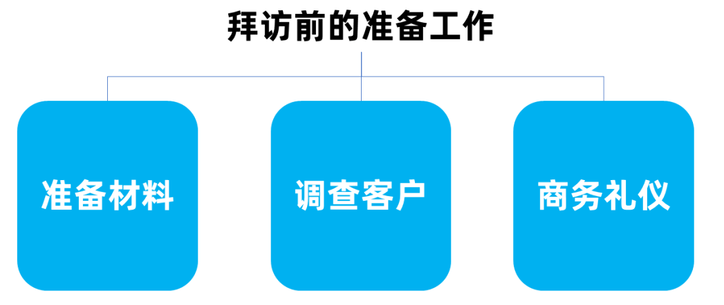 拜访之前,销售人员要根据此次拜访的目的,准备好相应的资料,包括公司介绍、产品介绍,如果需要样品展示则需要随身携带,还有公司的小礼物、自己的名片等等。