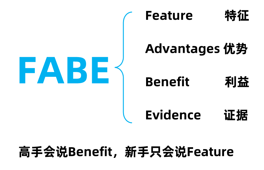 见面后最开始的三分钟是非常关键的,如果你点到位的话,就很快能打开客户的心扉,开启一段合作。第六步是产品介绍。产品介绍要遵循FABE的原则。