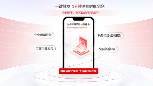 畅捷通推出的创新产品“易企检”财税风险检测服务,内置近百个财税风险检测指标和风控模型,系统在采集授权企业客户的财税票信息后,通过综合分析企业的财务指标、税务指标、关联交易、发票进销项风险等信息,只需3分钟,便可获取全面的财税评估报告。