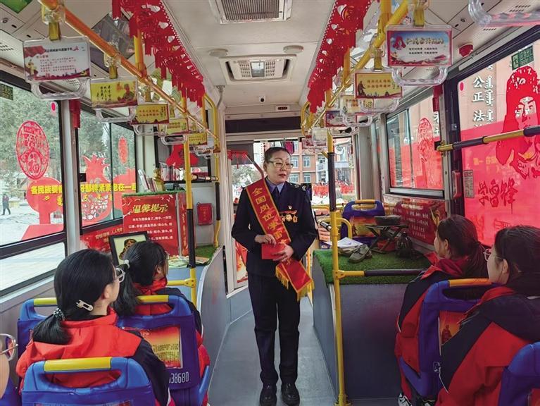 “为弘扬雷锋精神,2020年,我的车组率先打造了‘学雷锋’主题车厢。车内张贴雷锋同志画像,展示‘学雷锋主题车厢’的服务举措和雷锋故事等内容,让公交车成为群众接受雷锋精神教育的‘流动站’。”刘海燕说。