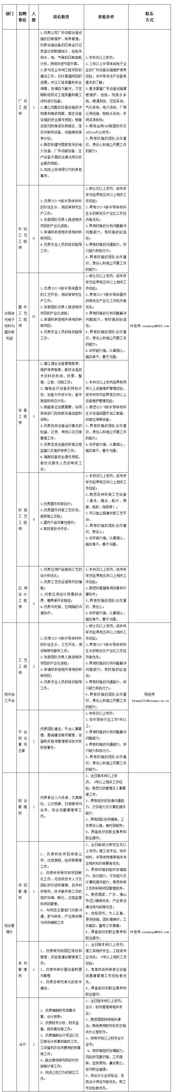 半导体光电子材料与器件研究部、纳米加工平台以及综合管理办现面向社会公开招聘人员。具体事项公告如下: