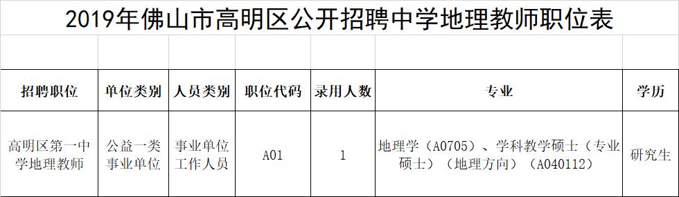 9.具备岗位所需的其他资格条件,详见附件1《2019年佛山市高明区公开招聘中学地理教师职位表》。