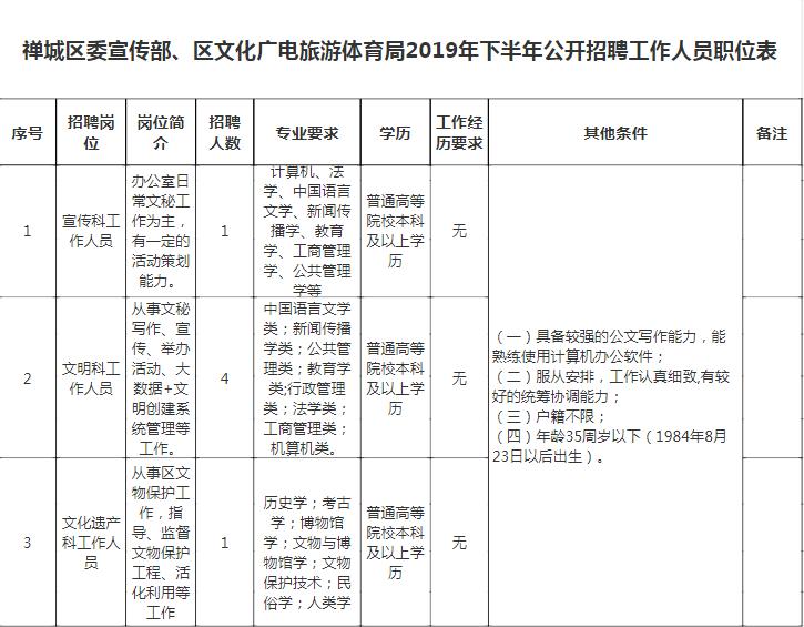 招聘岗位 本次招聘人员安排在禅城区委宣传部、区文化广电旅游体育局工作,招聘人数6名。