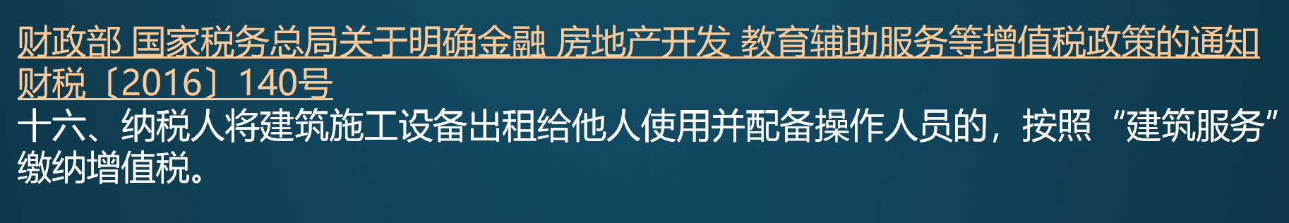 季晓莉/文 为了解决2016年营改增后建筑设备租赁税率从营业税时代的5%大幅提高的问题,财税〔2016〕140号给设备租赁企业一个专门的政策。即配备操作人员的建筑设备租赁可以按“建筑服务”缴纳增值税,但是实际执行中,到现在仍然存在着许多问题。