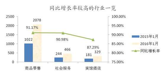 与2015年1月相比,商品零售、社会服务、宾馆酒店等行业举报投诉量同比增长超过80%(如图3)。