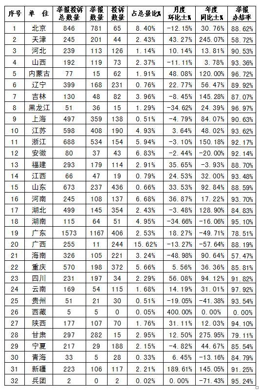 价格举报投诉分地区统计表