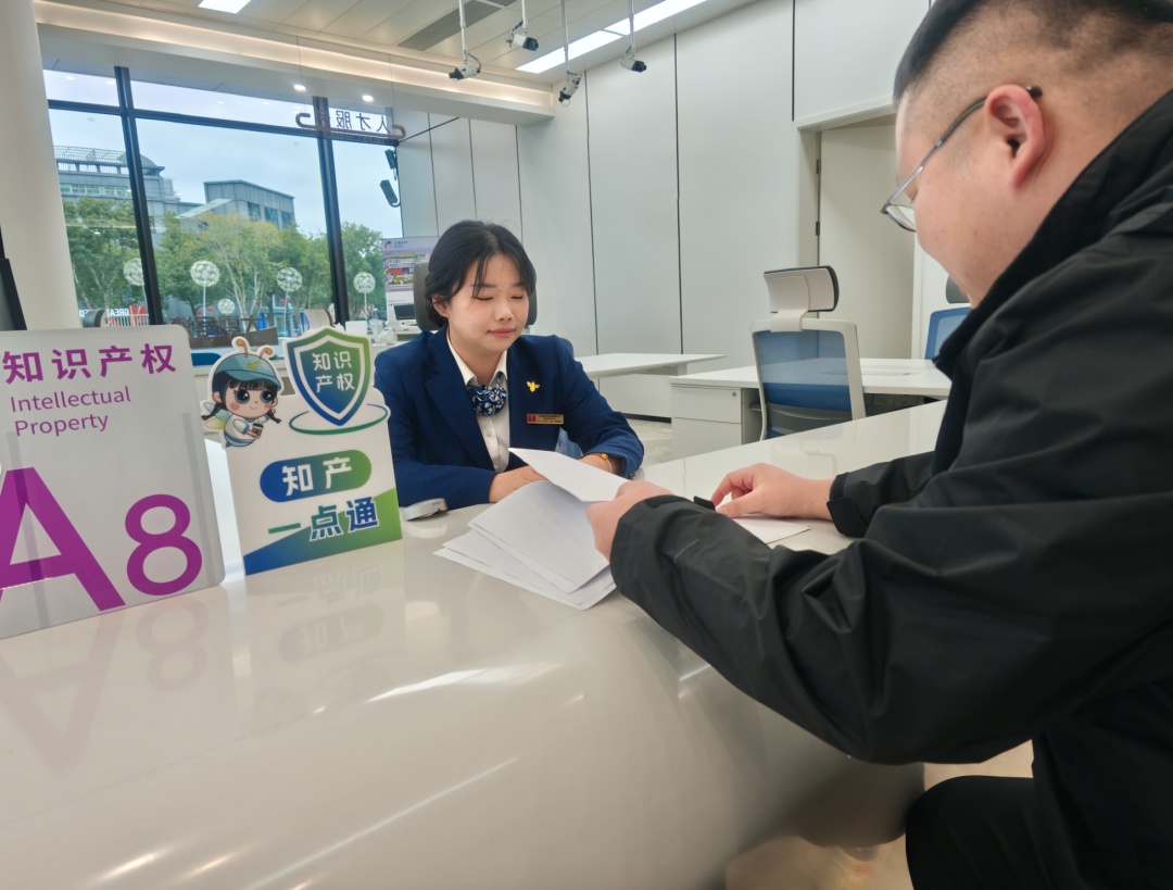 该窗口设在大厅一层A区。针对“大零号湾”以及周边产业园区的科创企业知识产权创造、运用、保护等需求,增设知识产权服务窗口,为企业提供商标业务受理、专利实施许可合同备案、公共服务机构查询、涉外知识产权纠纷指导申请等服务。在这里,多个知识产权公共服务事项实现“一口受理”,重点事项被纳入“一网通办”系统。无论是个人还是企业,有关知识产权创造、运用、保护、管理等各环节问题,都能来这里找到“解决方案”。