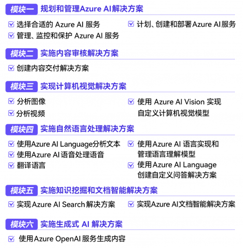 课程分为六大模块,全面覆盖AI解决方案的设计与实施: