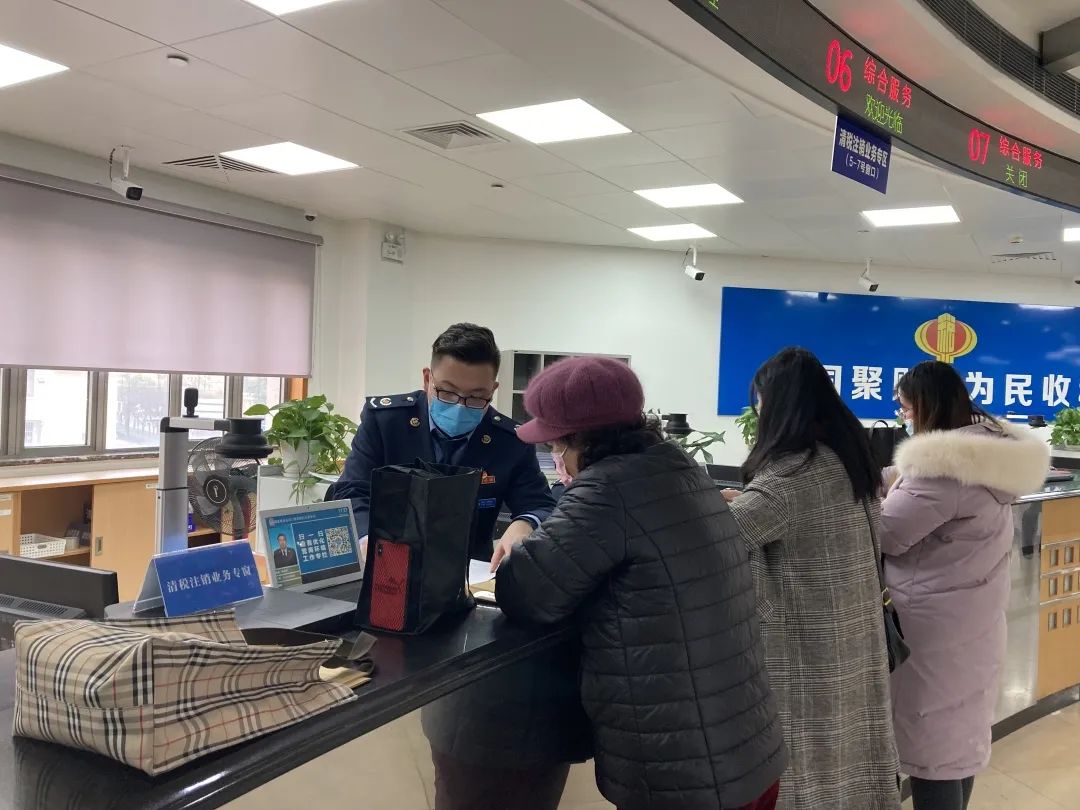 1月4日,嘉定区税务局办税服务厅的干部早早来到工作岗位,做好桌面清洁、消毒等工作。打开服务评价系统,以最积极的面貌迎接每一名纳税人。导税台的税务干部认真预检申报表等材料,提供办税指引,用每一个点滴细节汇聚成最优质的纳税服务质量。