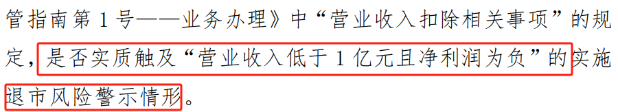 深交所首先要求公司结合营业收入构成、行业特点、经营模式等,自查说明营业收入扣除项目是否完整,是否符合深交所《上市公司自律监管指南第1号——业务办理》中“营业收入扣除相关事项”的规定,是否实质触及“营业收入低于1亿元且净利润为负”的实施退市风险警示情形。