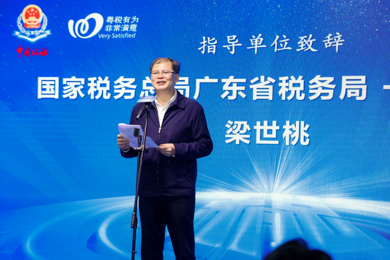 图为国家税务总局广东省税务局一级巡视员梁世桃为活动致辞