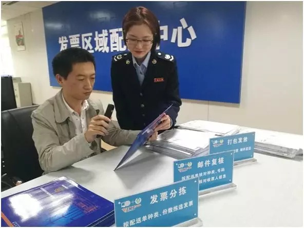 10月“大征期”,盐城市税务局发票配送中心格外忙碌,邮政“小哥”在对税务发票专递逐个扫码。该局有全江苏省首个发票区域配送中心,纳税人只需登录电子税务局,选择发票领用申请模块进行操作,“不跑一步路”,EMS当天就能将发票送达。