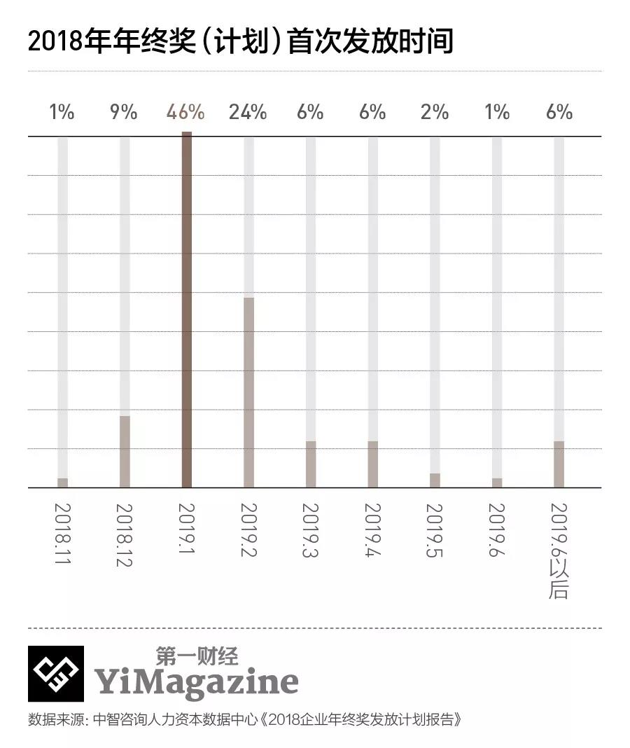大部分公司选择在一二月份发放年终奖