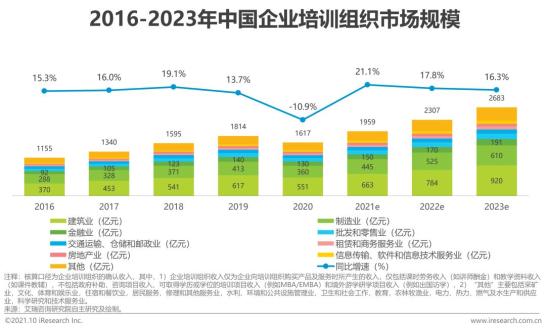 近1617亿,建筑、制造和金融行业企业培训市场占比超60%