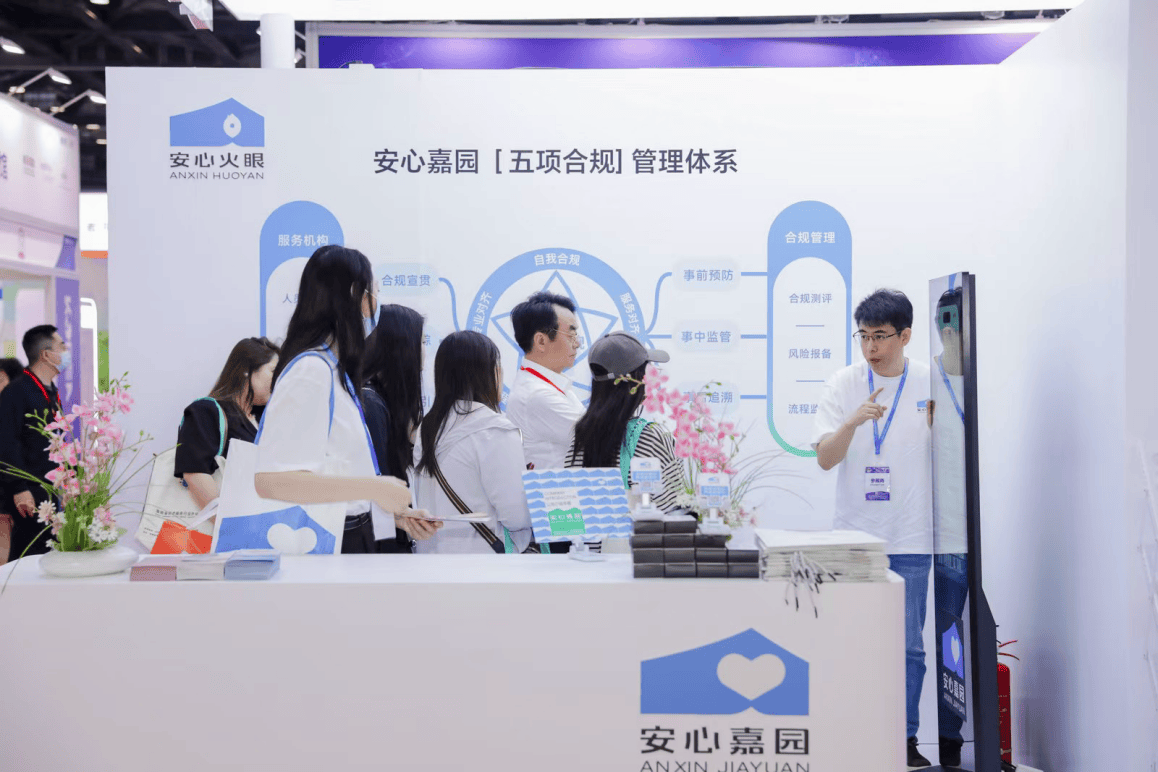 在安心嘉园精心打造的沉浸式互动展区,以"科技赋能养老"为主线,观展用户通过可视化系统切身感受智慧康养的技术革新。借助全场景动态演示,AI+大数据驱动的个性化服务系统,以及五项合规化全流程管理模型,参观者可深度体验安心平台在智能养老技术融合。安心嘉园将技术创新与合规管理深度融合,不断践行“智慧养老”新标杆。