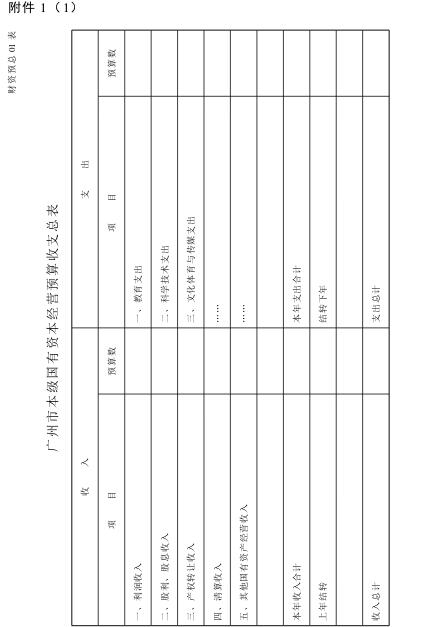 1预算收支表(财资预总01~05表,附件1.1-1.5),反映市本级国有资本经营预算收支汇总情况;