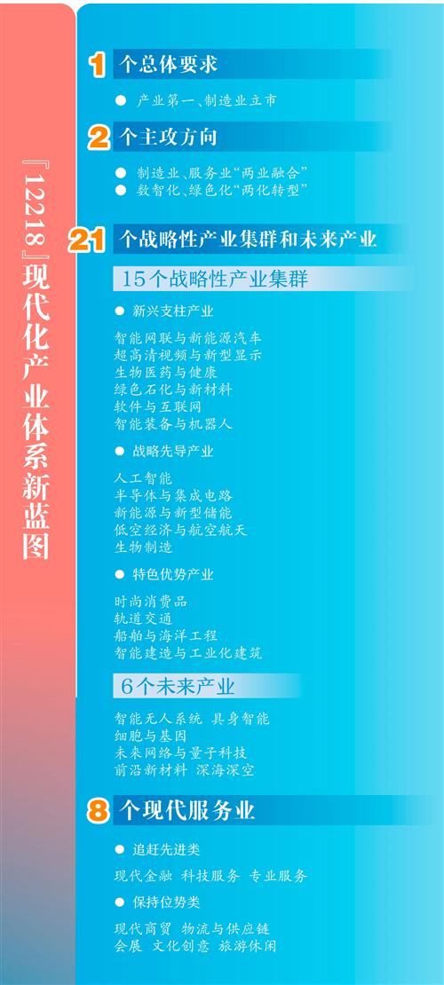 产业兴,则城市兴;产业强,则城市强。作为我国重要的中心城市、粤港澳大湾区核心引擎,广州立足资源禀赋、产业基础、科研条件,经过深入调研、反复论证,提出加快建设“12218”现代化产业体系,擘画了重点产业发展的新蓝图。这是广州落实党中央决策部署和省委工作要求的战略之举、关键之为,也是一场竞速赛、耐力赛、接力赛。