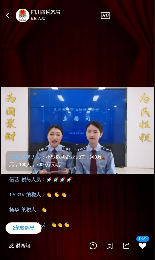 为大力提升线上服务质效,达州市税务局不但积极组建专业性强、亲和力强的线上直播团队,采用生活中的实例生动形象地解答纳税人的涉税难题,拉近与纳税人的距离;还持续整合征纳互动平台、税邮驿站、税企微信群等线上咨询渠道,实现线上咨询服务“不打烊”。