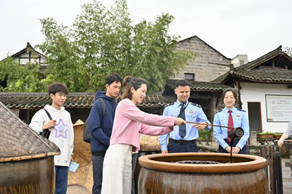 在泸州市合江县,来自四川三河职业学院的“税收普法志愿者”走进百年酿造作坊开展“税法实践课”,通过沉浸式体验非遗技艺,将传统酱油酿造的原料采购、生产制作、产品销售三大环节与增值税抵扣、成本扣除、发票开具等税收实务相结合,将税法学习嵌入生产经营全过程。在夹江县状元书画纸厂竹纸研学实践基地,在长宁县竹海非遗小镇,在遂宁蓬溪县任隆镇麦秆画坊,志愿者们学习税收政策、体验非遗制作、聆听技艺传承故事,感悟家国情怀和激发青春力量。