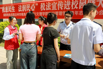四川三河职业学院大学生税收普法志愿者开展“税动青春酿造传承”活动现场