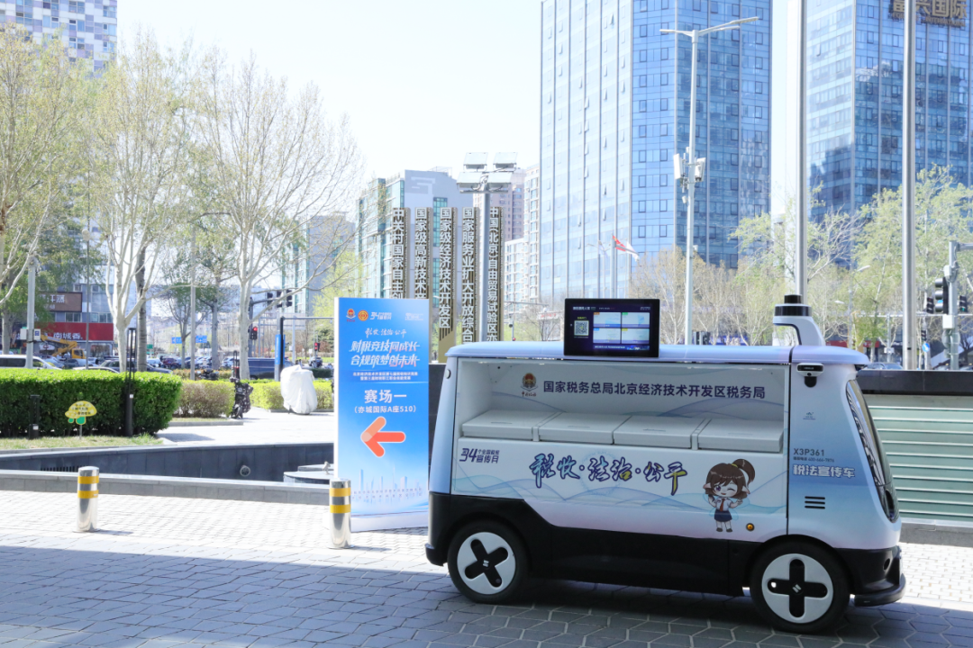 以北京亦庄为核心建设的“北京市高级别自动驾驶示范区”,在无人驾驶技术领域持续攀高向新,书写着科技发展“亦庄答卷”,本届赛事将无人驾驶技术与税收普法深度融合,推出“移动式、全场景”税法宣传无人车,打造覆盖园区、企业、社区的沉浸式普法阵地。在亦庄新城范围内,印有税宣标识的无人车穿梭于智能路网之间,成为科技助力企业合规经营的一道流动税收宣传风景线。