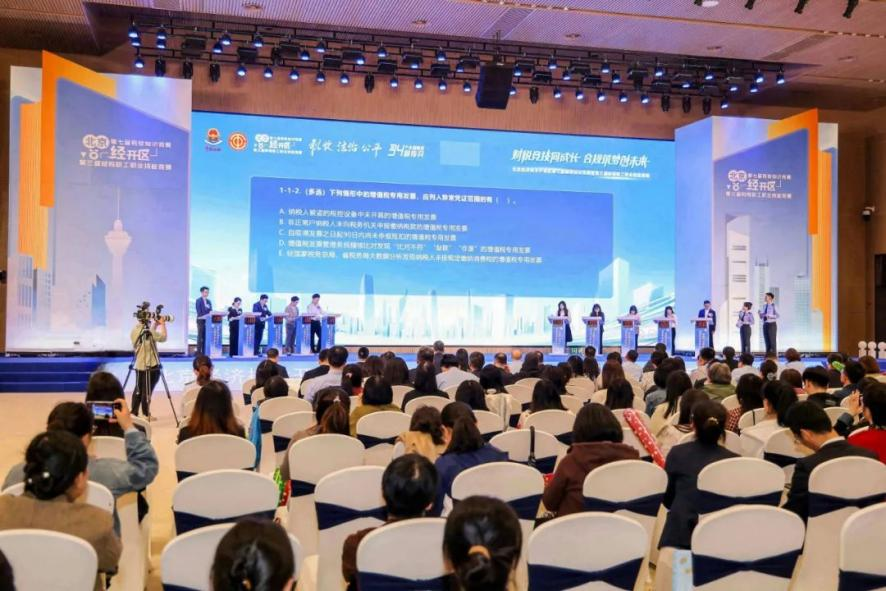 春日亦城,百卉萌动。4月21日,由国家税务总局北京市税务局指导,北京经济技术开发区税务局、北京经济技术开发区总工会联合主办,北京市税务局第四税务分局、北京市税务局第四稽查局协办的北京经济技术开发区第七届税收知识竞赛暨第三届财税职工职业技能竞赛决赛在北京亦庄通明湖会展中心成功举办。本届赛事以“财税竞技同成长、合规筑梦创未来”为主题,吸引京东集团、亦庄控股、京东方等110余家企业的300余名财税工作者参与。