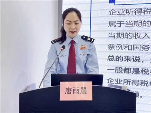 唐雨晨还紧密结合近年来税务部门公布的典型案例,通过“以案说法”形式,深入剖析企业所得税申报中的高频风险点,重点强调收入确认、税前扣除、税收优惠备案等关键环节的合规要求,引导企业树牢“依法纳税、诚信经营”理念,切实提升税法遵从度,帮助企业在合规的基础上实现持续发展。