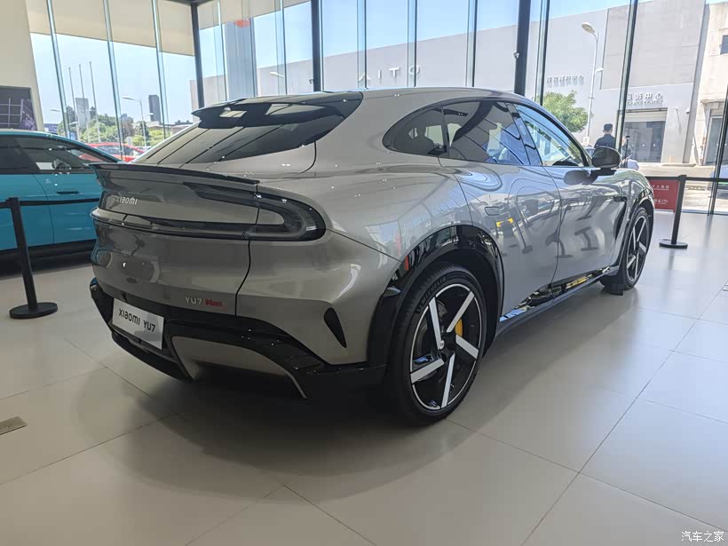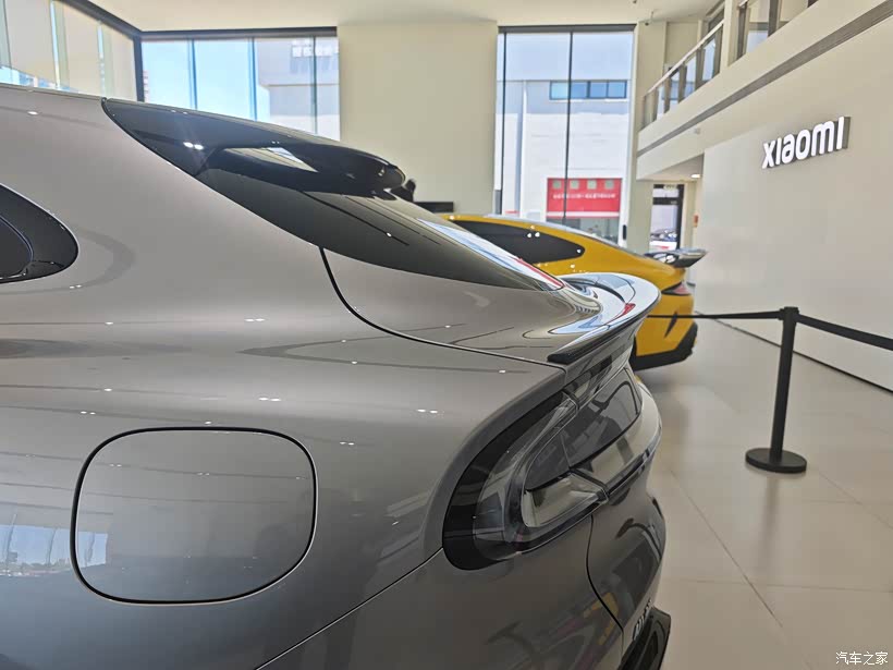 从车尾看环型式的尾灯,这到晚上亮起来很有辨识度,这要是跑在路上一看就是小米YU7,翘起的小鸭尾还是很帅的。