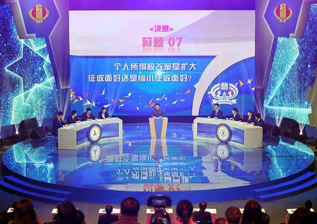 在全国总决赛阶段,赛事规格持续升温。大赛组委会邀请中国社会科学院财经战略研究院院长高培勇、北京大学法学院教授刘剑文,中国人民大学财政金融学院教授朱青、格力电器股份有限公司董事长董明珠、工人日报社会周刊编辑部主任石述思、中央民族大学历史文化学院副教授蒙曼和武汉大学哲学院副教授周玄毅7位知名教授学者、企业家和文化名人等担任评委,现场点评辩论表现,剖析税收热点,帮助观众解读税收法律法规,并为参赛队打分。