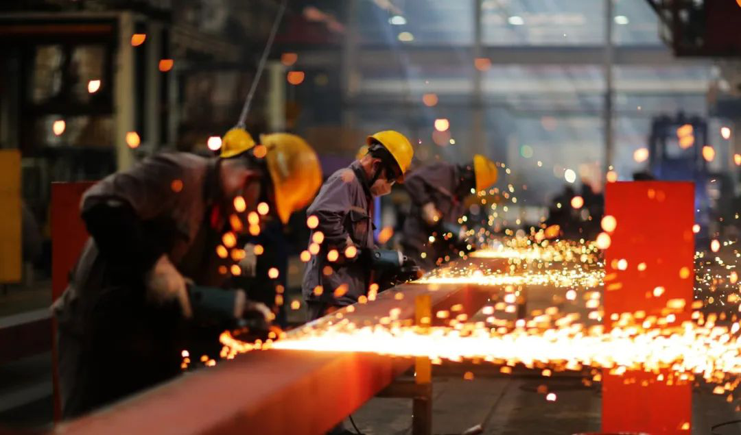 中车齐齐哈尔车辆有限公司车间内火花四溅,工人们正在加紧生产。